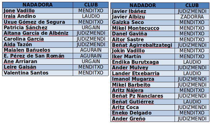 Por su parte, Garazi Uribarri, en el 50m libre, y Maialen Pérez de Nanclares , en los 50m y 100m espalda, consiguieron la mínima nacional y tendrán plaza para disputar estas pruebas en el Campeonato de España Absoluto que se celebrará la semana que viene en Barcelona.